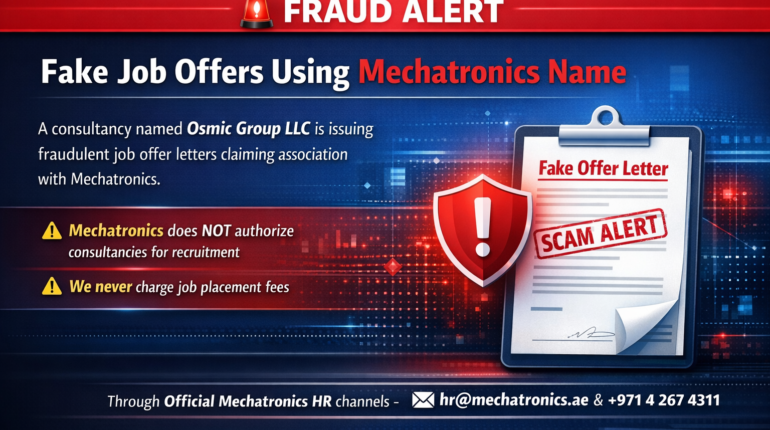 We have been informed that a consultancy named “Osmic Group of Company” is issuing fake job offer letters using the name of Mechatronics Group of Companies. Please note: Mechatronics…
